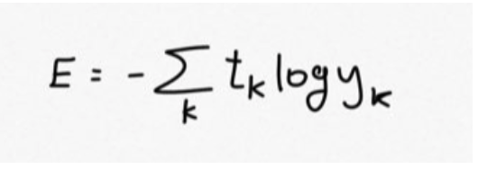 변수 t는 정답레이블로, 손글씨 데이터의 실제 숫자가 “2”임을 의미한다. 이는 원-핫 인코딩 방식으로 정답에 해당하는 값만 1로 나타낸 것이다. 그리고 변수 y는 신경망이 학습을 통해 이미지를 추정한 값이다. 0.6이 제일 높으므로 신경망은 손글씨 이미지가 “2”라고 추정하고 있다.