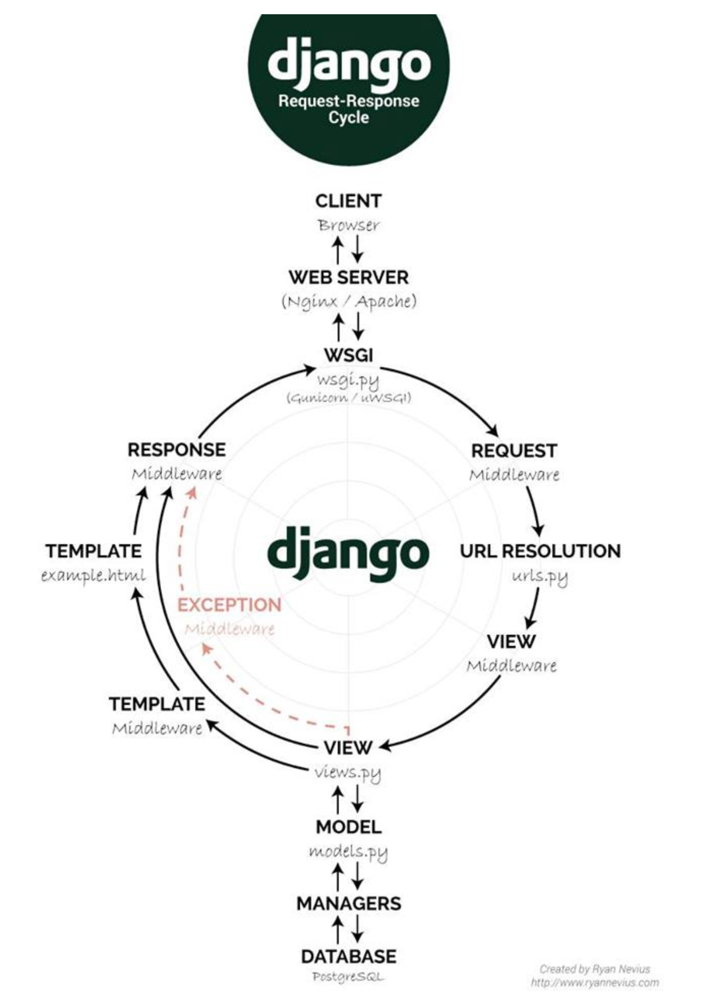 장고에서 요청을 받고 응답하기까지의 프로세스를 살펴보자.